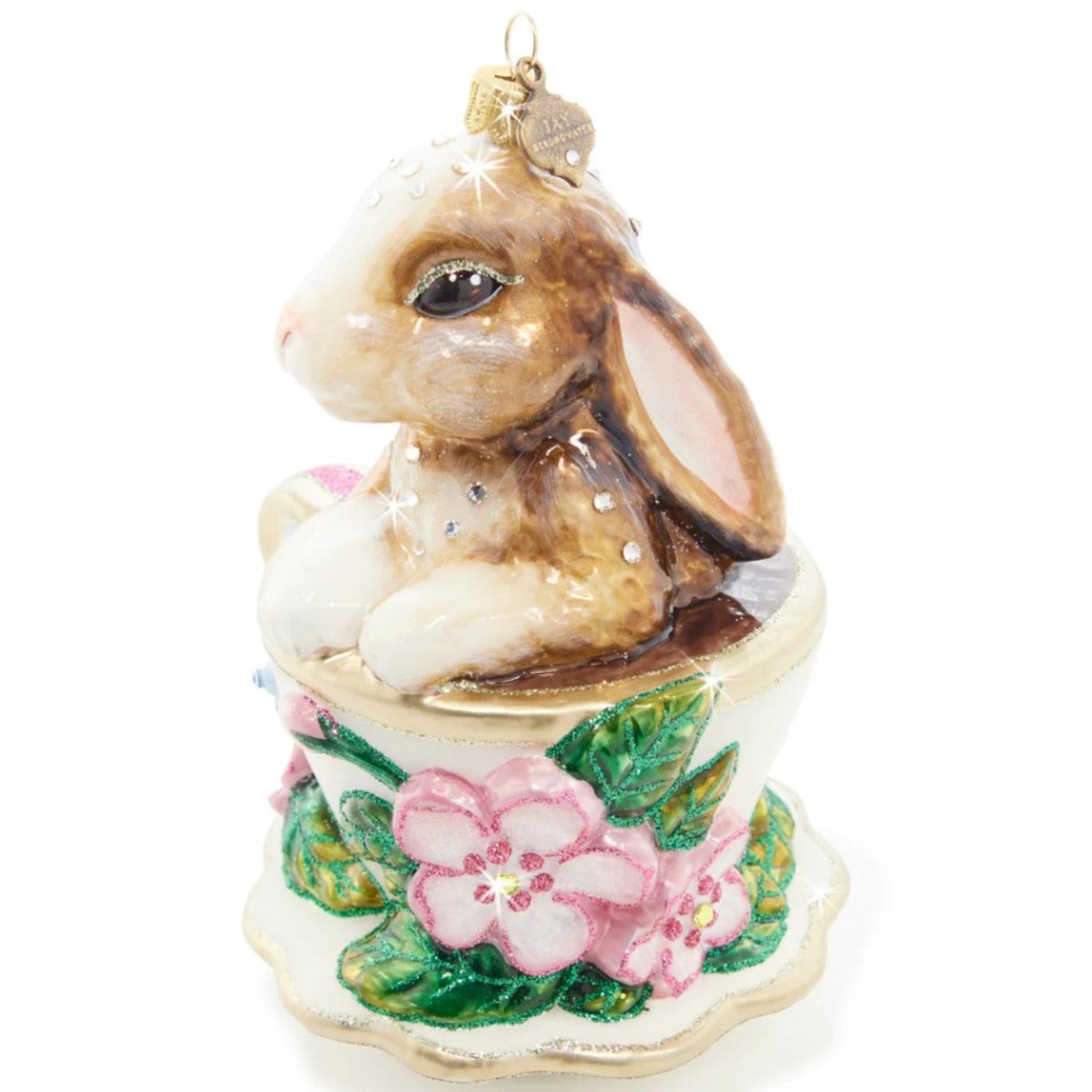 Jay Strongwater Bunny Teacup Glass Ornament Mouth-Blown Glass From Old-World Glass Artisans In Poland, Hand-Painted With Enamels And Glitter, And Hand-Set With European Crystals. 6" H X 5" W X 5" D