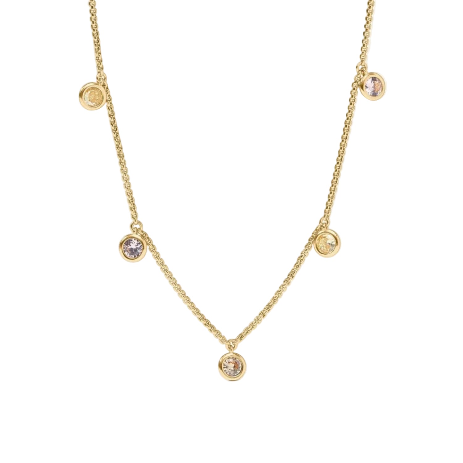 Julie Vos 24KT Gold Plated Rainbow Delicate Charm Necklace In Champagne Radiance, 16 / 17 / 18 Inches (Adjustable)