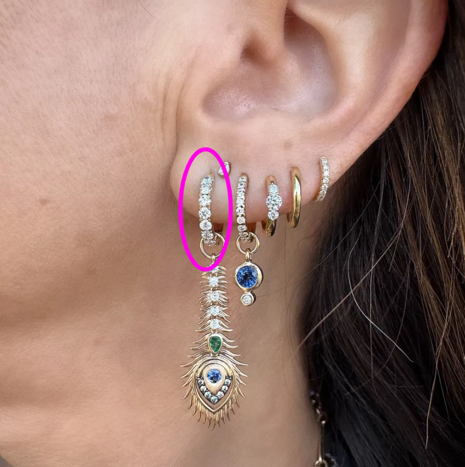 This Medium Diamond Huggie Hoop delivers elegant sparkle in a comfortable design. Crafted in 14K yellow gold with meticulous French pavé setting, these huggies feature a continuous line of brilliant diamonds that catch the light with every movement. The medium size offers the perfect balance - substantial enough to make a statement yet comfortable for everyday wear. These versatile hoops hug your earlobe securely while providing maximum sparkle from every angle. Perfect worn alone for classic elegance or as a base for your favorite Three Stories earring charms. Hoops sold as singles. Hoops and charms sold separately.